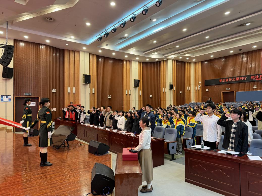 活动在米兰电竞·(中国区)国旗护卫队出场中拉开序幕。在领誓人的带领下,大家面向国旗,举起右拳,跟诵誓词。