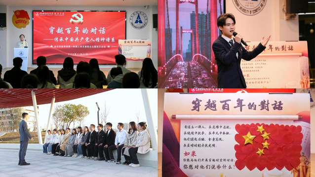 在复赛的党日活动风采展示环节中,经济学院学硕第一党支部、学硕第三党支部联合开展了“穿越百年的对话——传承中国共产党人精神谱系”主题党日活动。