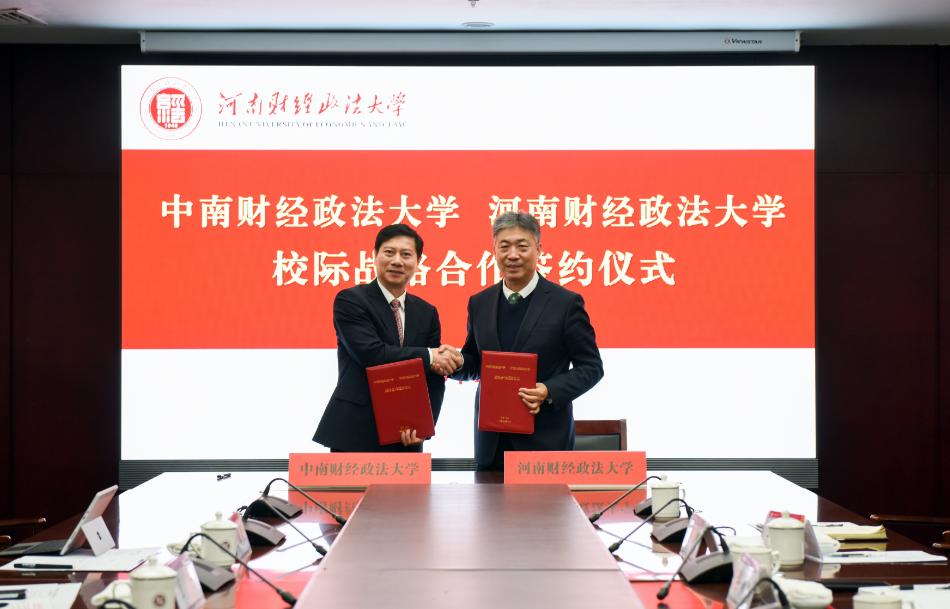 新闻网讯(通讯员 张亚星)1月4日,校长、党委副书记朱方伟代表学校与河南财经政法大学签订校际合作框架协议。河南财经政法大学党委书记、校长司林胜,副校长、综合校务部部长、管理学部部长张扬,党政办公室、党委组织部、合作发展部、管理学部等部门领导参会。会议由张扬主持。