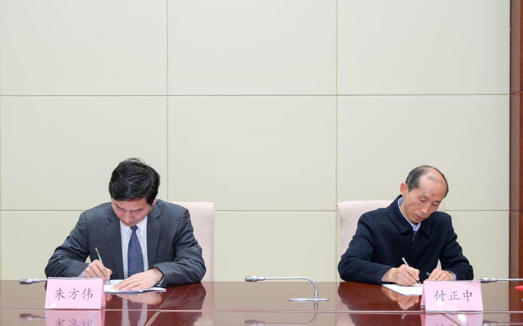 会上,胡志强向我校授牌“湖北省备案审查研究中心”,朱方伟代表学校接牌,付正中和朱方伟共同签署协议。