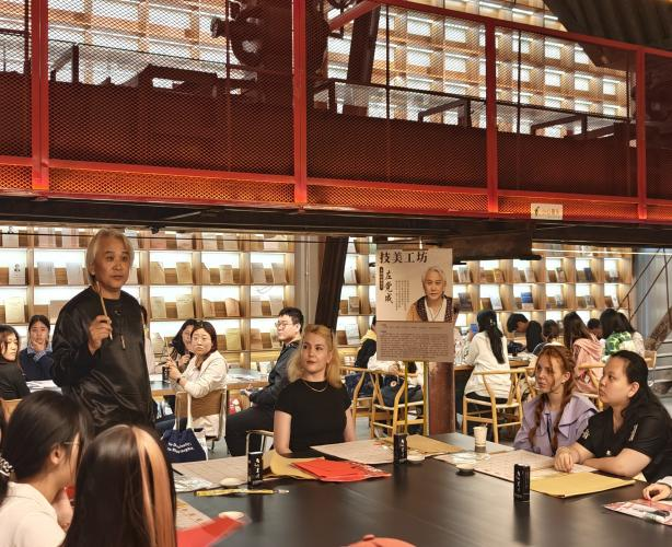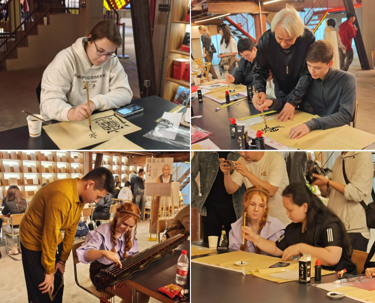其中,在被称为“远东第一”的华新水泥厂(华新1907文化公园),同学们参观了近代以来水泥厂的发展变化,并在非遗小课堂体验手工、书法、古琴,感受中国文化与中国近代工业遗址的完美融合。