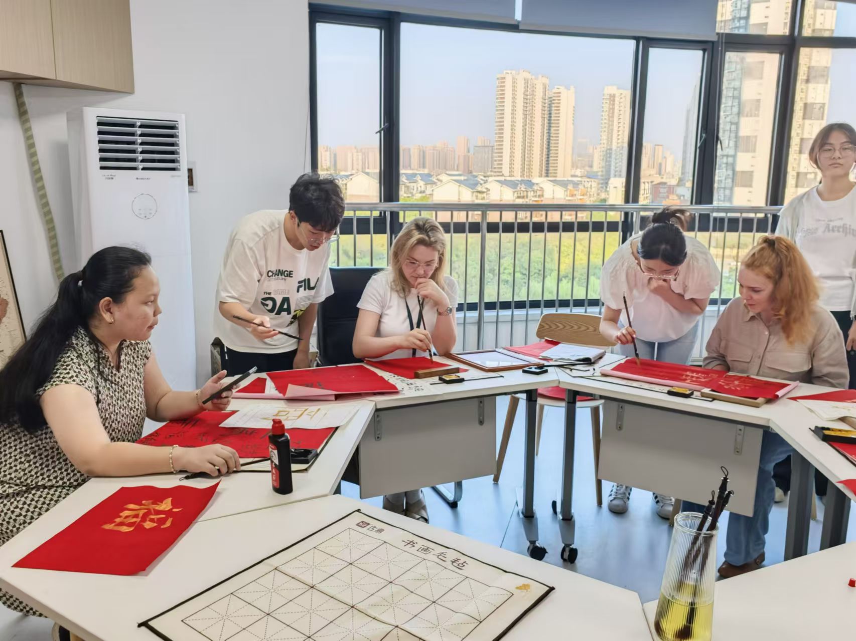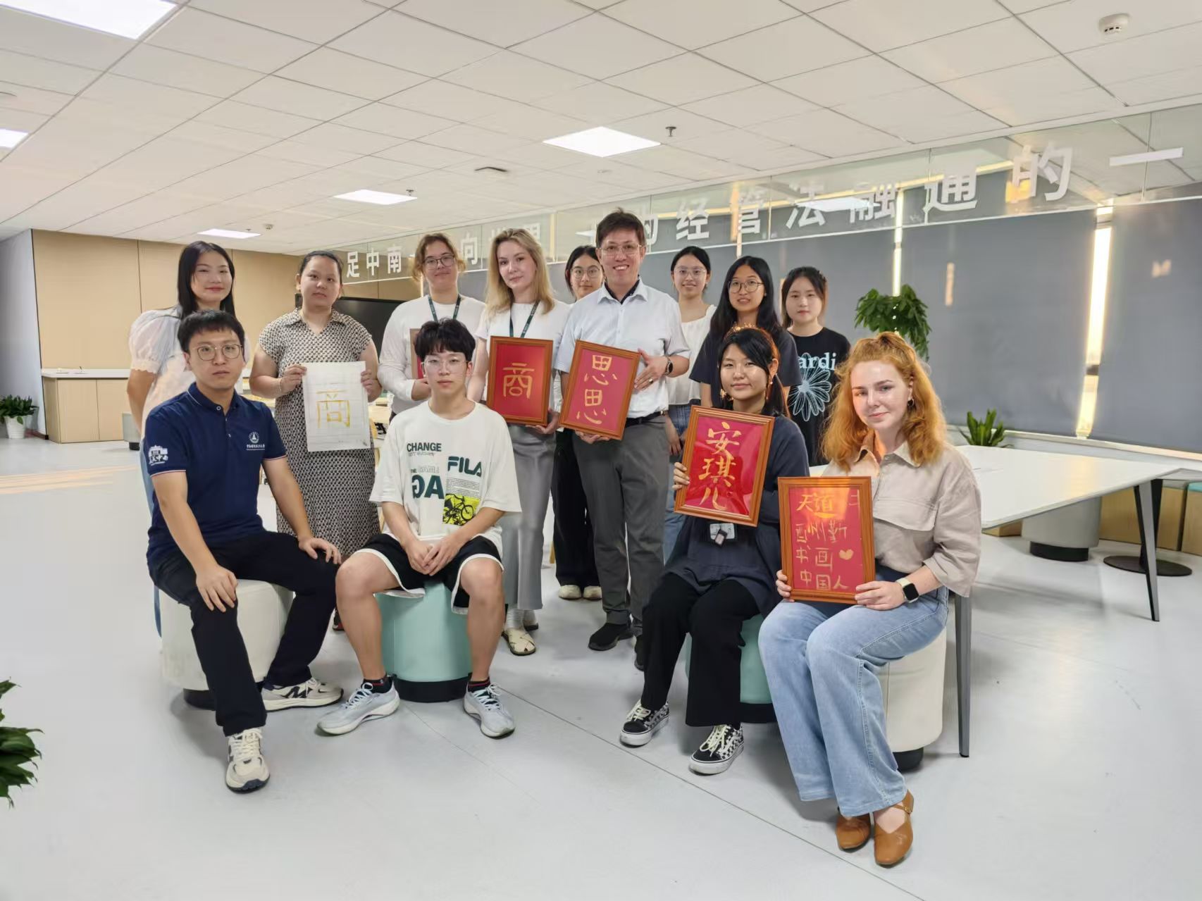 工商管理学院面向全英文授课本科留学生举办书法体验活动,国际经济与贸易专业的学生志愿者们准备好笔墨纸砚,带领留学生体验中国书法,留学生一笔一划写出自己的中文名字、“我爱你中国”等字样。参加活动的留学生纷纷表示,中华文化魅力无限,希望今后能够继续参加此类活动,成为中国学生的好朋友。