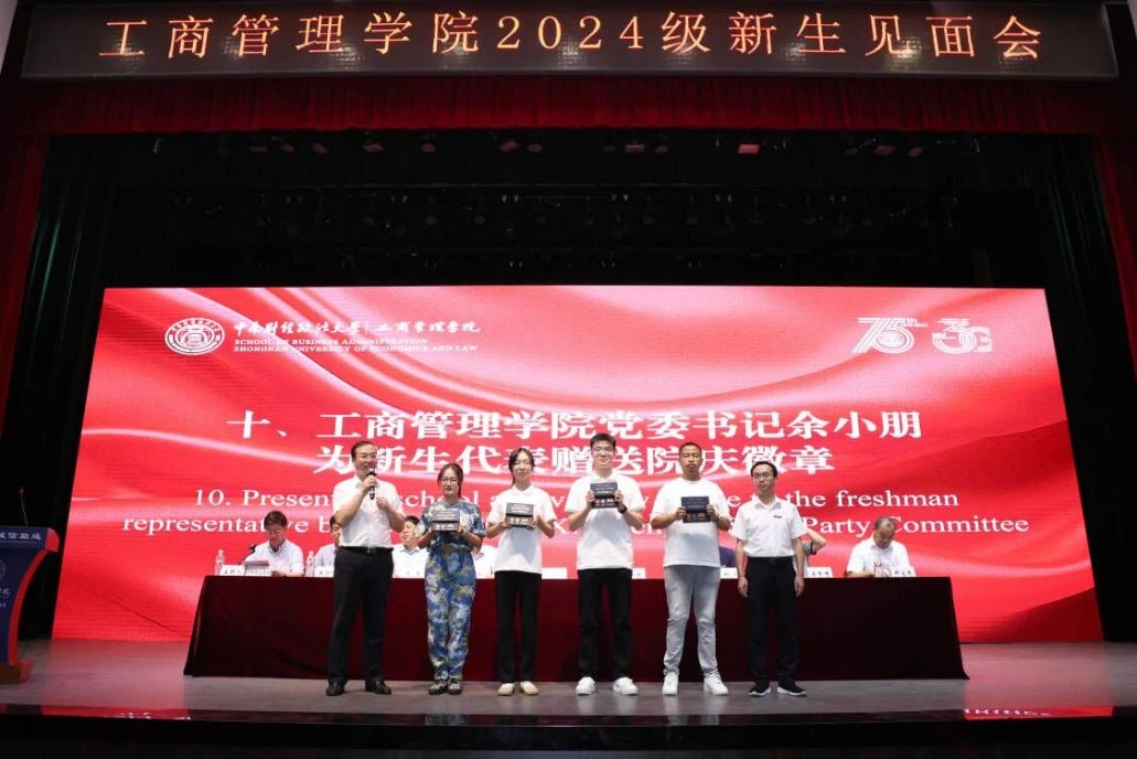 2024年9月,在国际化办学背景下,工商管理学院首次举办中英双语新生见面会,来自俄罗斯的留学生KISELEVA ANASTASIIA(思思)作为学生代表发言。留学生代表还参与了“书香工商 梦想起航”赠书和赠送院庆徽章环节,全院的本、硕、博及留学生新生共同开启崭新学习之旅。