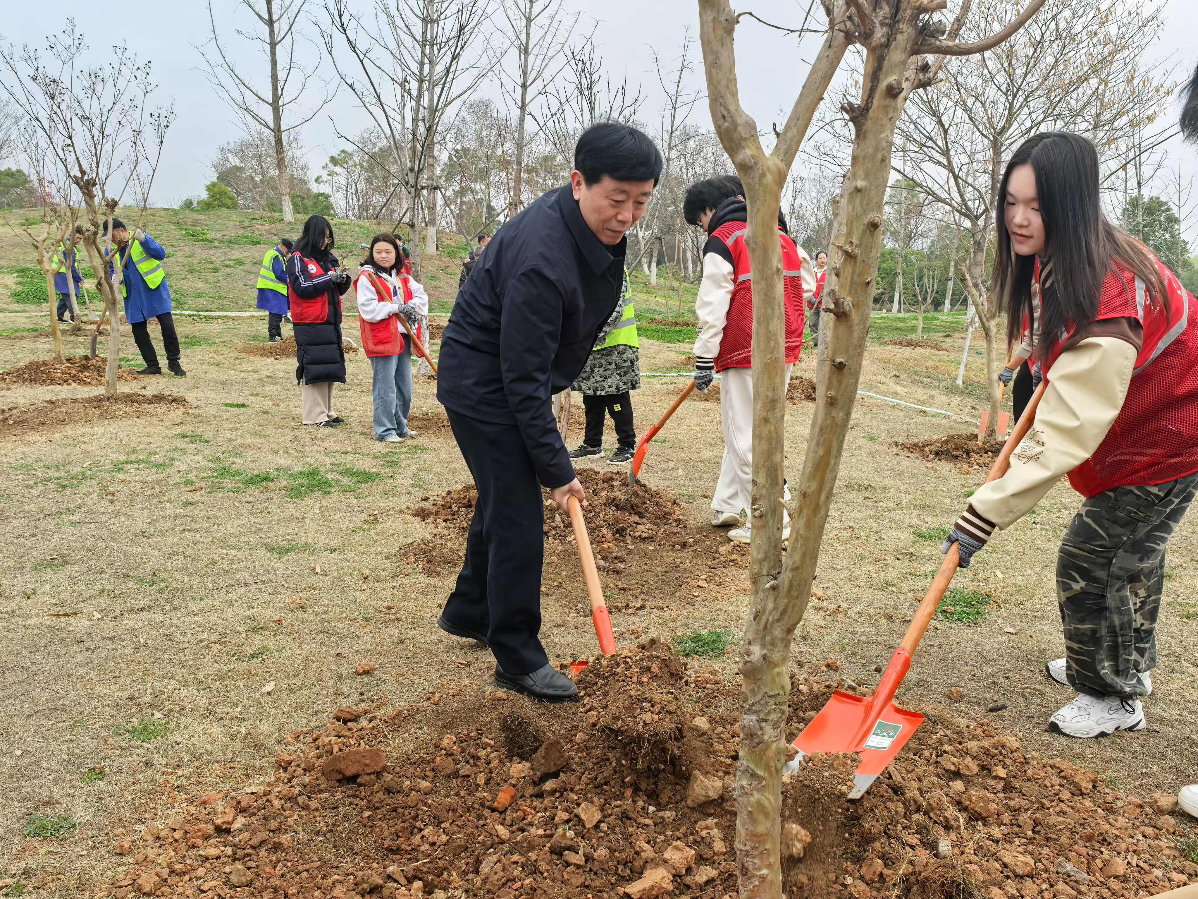 新闻网讯(通讯员 古丽米热·艾尔西丁 摄影 杜鹏 彭佳)3月11日上午,学校在南湖校区开展2025年植树节义务植树活动。校党委书记侯振发,党委副书记、纪委书记申祖武,党委常委、副校长陈柏峰和学校相关职能部门负责人、师生代表百余人共同参加活动。