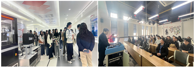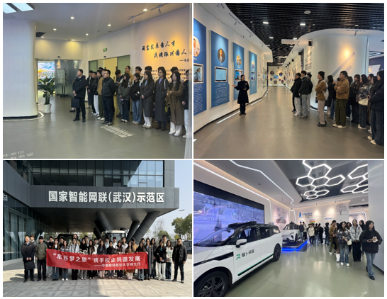 在车谷人才创新港和国家智能网联汽车(武汉)测试示范区,经开区高层次人才中心主任孙莉女士介绍了经开区在智能制造领域的发展成果以及对大数据和人工智能复合型人才的引育政策举措,师生们观摩智能网联技术和5G通信赋能智能制造的案例。