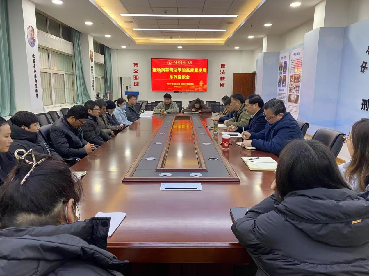 新闻网讯(通讯员 刘宇 柯希鹏 沈子翔 )为深入学习贯彻党的二十届三中全会和全国教育大会精神,认真贯彻落实《教育强国建设规划纲要(2024—2035年)》和校党委有关要求,2025年以来,刑事司法学院聚焦学科发展、专业建设、科学研究、队伍建设、人才培养、社会服务等工作,召开推动高质量发展系列座谈会,进一步凝聚共识、增强合力、促进发展。