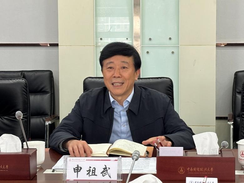 申祖武对王玉刚一行来校调研表示热烈欢迎,并介绍了学校历史沿革、办学理念、办学特色以及人才培养等方面的情况。他表示,两校自建立对口支援关系以来,部门、院系以及教师层面交流合作密切,在人员互访、干部选派、师生交流、院院合作等方面取得了一系列的工作实效。希望双方优势互补、资源互通,在对口支援、人才培养、学科建设等方面持续深化合作、共谋发展。