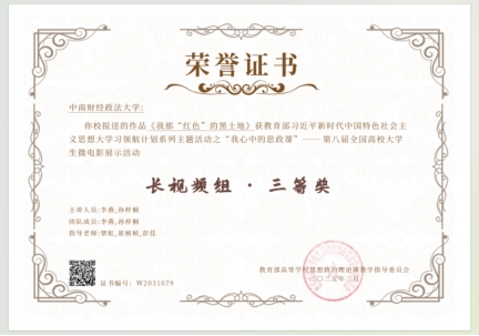 《我那“红色”的黑土地》获第八届全国高校大学生微电影展示活动长视频组三等奖。外国语学院本科生李燕、刑事司法学院本科生孙梓桐,与来自辽宁的校友刘征分赴中共珲春县委诞生地、珲春十三烈士陵园、哈尔滨党史馆、松花江岸、“九一八”历史博物馆等红色地标、红色教育基地,倾情讲述家乡的红色党史故事,并结合习近平总书记在东北考察时首次提出的“新质生产力”重要论述,在“行走的思政课”中展现东北这片黑土地赓续红色血脉、因地制宜发展“新质生产力”的时代答卷。