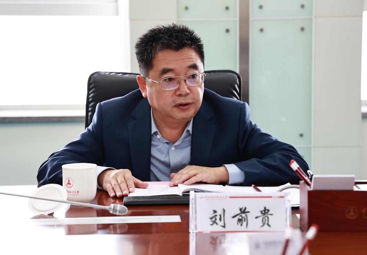 朱方伟对刘前贵、金桩一行来校调研交流表示热烈欢迎,并系统介绍了学校基本情况,以及当下学校正在推进的综合改革发展思路。他指出,在近期工作中,学校紧紧围绕教育强国这一核心任务,加快推进我校改革方案的落地实施,以财经政法深度融通为基本目标,结合我校其他优势学科,持续建优财经政法深度融通的特色优势;深入推进零基预算改革,不断增加发展性资金投入,切实提升预算绩效管理水平;打破学院之间的壁垒,对各类资源进行优化配置,有效增强学科综合实力。他表示,我校将大力支持内蒙古财经大学有关学科建设工作,希望两校就学术交流、援建教师和银龄教师选派等工作加强交流合作,携手共促两校高质量发展。