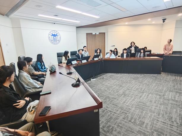在四楼仲裁庭,王永强副教授结合仲裁庭内当事人与仲裁员平席而坐的空间设计,指出这正是仲裁作为公共法律服务平等性的具象表达,与法院彰显司法权的阶梯式布局形成鲜明对比。