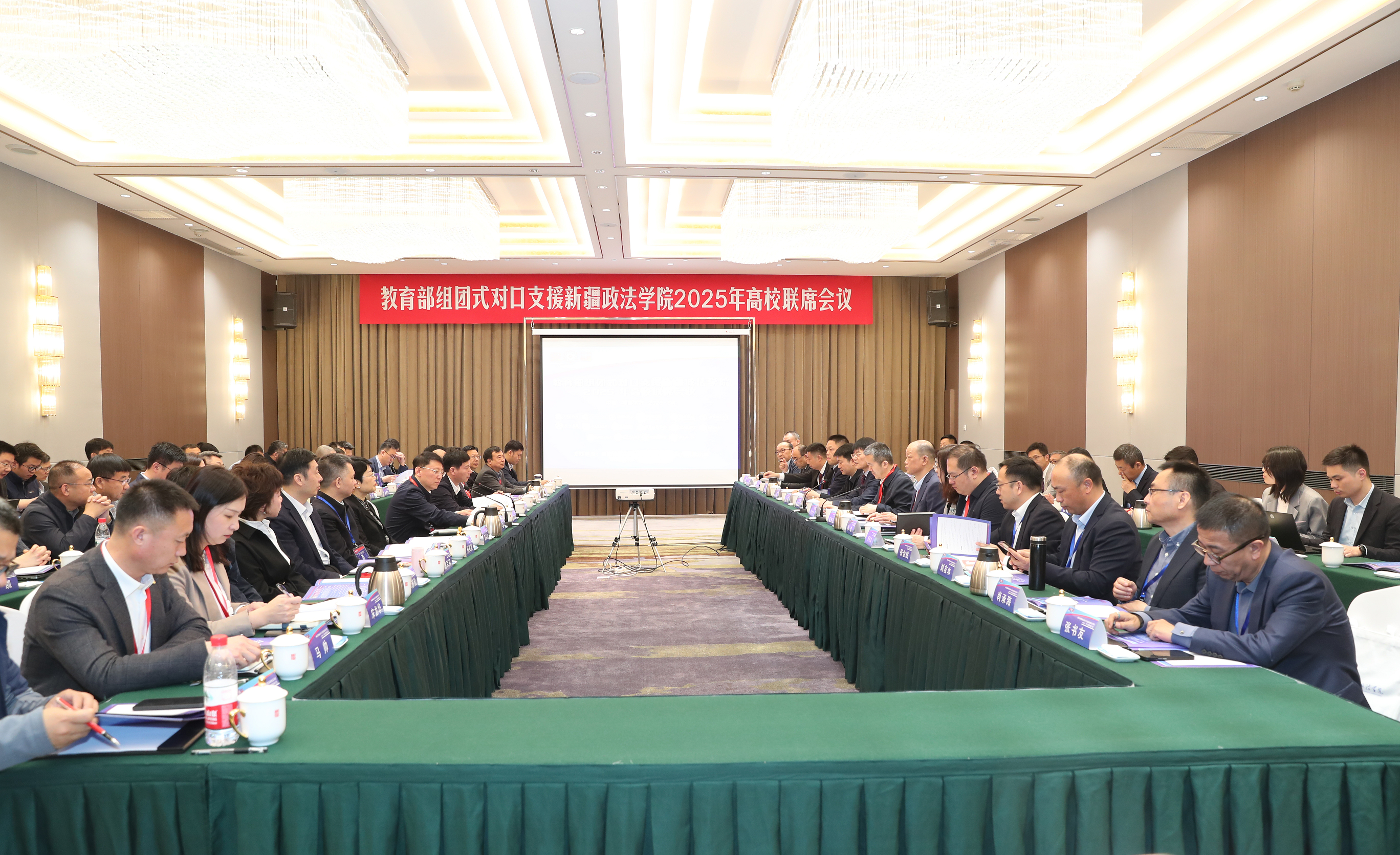 新闻网讯(通讯员 振兴)4月22日,教育部组团式对口支援新疆政法学院2025年高校联席会议在乌鲁木齐召开。来自中国政法大学、对外经济贸易大学、吉林大学等15所高校70余名代表到场参会。新疆生产建设兵团教育局党组书记、局长张永安出席会议并总结讲话,组团式对口支援新疆政法学院组长单位中国政法大学党委书记姜泽廷致辞,新疆政法学院党委书记、校长陈旭东作对口支援新疆政法学院工作报告。校长、党委副书记朱方伟作为对口支援新疆政法学院副组长单位代表出席会议并发言,校党委常委、副校长周铭山以及党委组织部有关负责人参会。