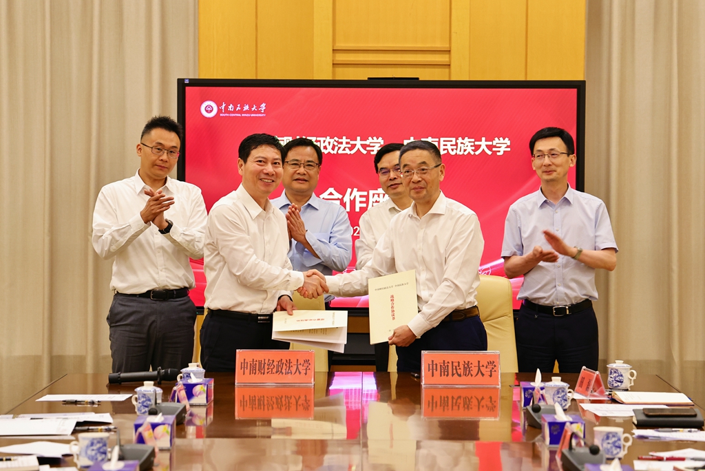 校长、党委副书记朱方伟与中南民大党委副书记、校长刘义代表双方学校签署战略合作协议书