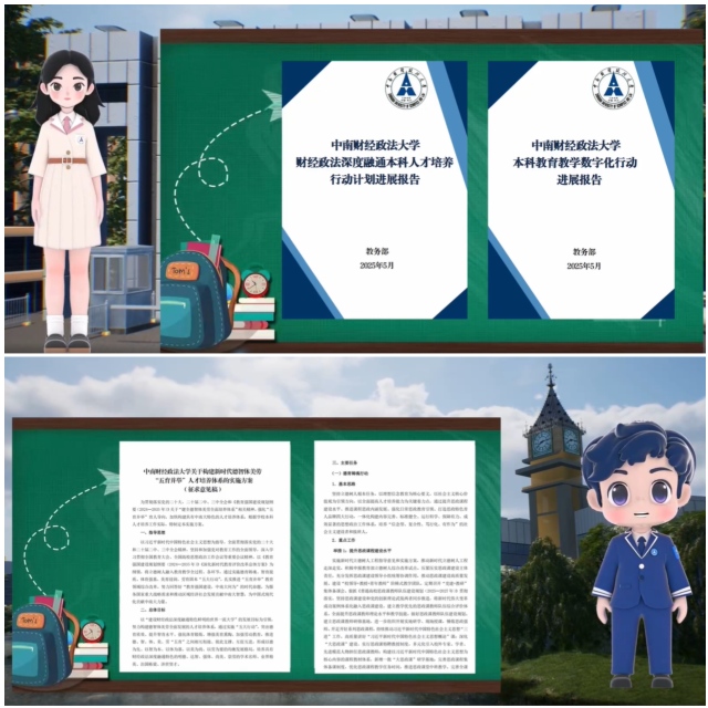 在发布环节,首创推出教务数字人“融融”和“通通”,总结财经政法深度融通人才培养和本科教育教学数字化阶段性成果,发布学校五育并举人才培养实施方案,融通型学院、专业、课程、教材、师资、资源平台建设指南和教师课堂教学人工智能应用指南等标准性文件,以数字影像全面擘画学校本科教育教学高质量发展蓝图。