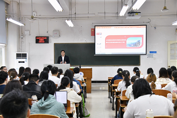 新闻网讯(通讯员 王益 摄影 杜鹏)5月8日上午,校党委书记侯振发在文澜楼106教室为法学专业2406、2407班的学生讲授题为“以彻底的自我革命精神全面推进新时代党的建设新的伟大工程”思政课,党委办公室、学校办公室、党委宣传部、教务部等单位负责人,马克思主义学院领导班子以及部分教师现场听课学习。