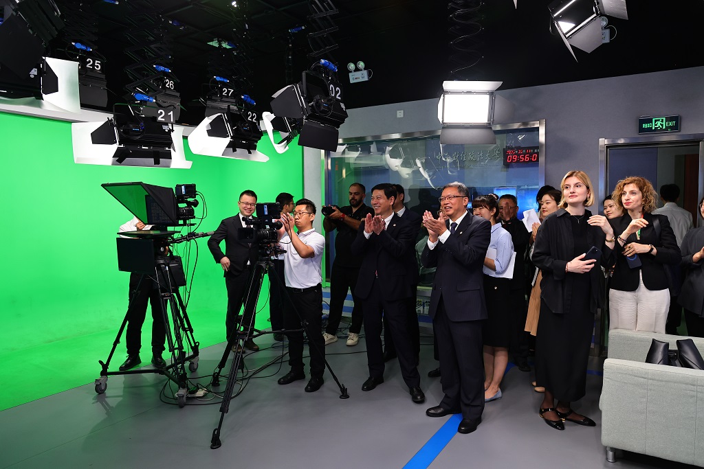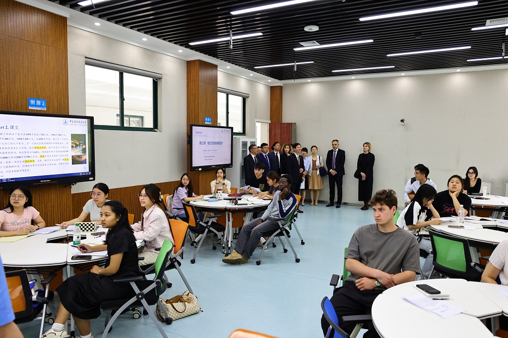 欢迎仪式后,格鲁吉亚教育部代表团参观了文波楼智慧教学创新实践区的智慧教室、高清录播教室、全景演播室、教学观摩室、教师工作坊,近距离感受我校数字化建设成果。