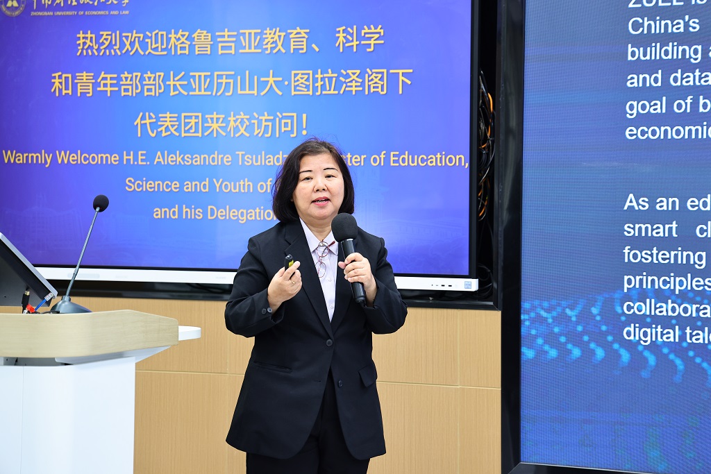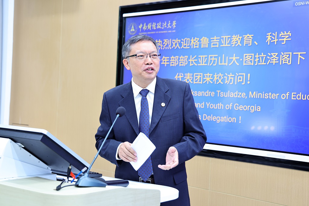朱方伟指出,数字化和国际化是目前学校高质量发展的重要机遇。学校不仅推进学科间的交叉融合,而且注重人文社科与科技创新的交叉融合。他强调,学校紧抓高水平对外开放的机遇,注重与“一带一路”沿线国家开展教育交流合作。格鲁吉亚是最早支持共建“一带一路”倡议的国家之一,更是“一带一路”倡议的重要参与者。学校曾接受多位格鲁吉亚籍学生来校进行汉语言学习和专业进修。希望进一步扩大深化与格鲁吉亚的教育交流合作,邀请格鲁吉亚高校参与共建交叉学科国际联合研究中心,推动法学、经济学、管理学和计算机科学等领域开展深入的交叉研究;希望与格鲁吉亚的高校举办学术研讨会、文化交流活动,鼓励人才交流与文化互鉴,吸引更多格鲁吉亚学生来校学习,也为中国学生提供了解格鲁吉亚文化和教育的更多机会,增进双方了解和友谊。