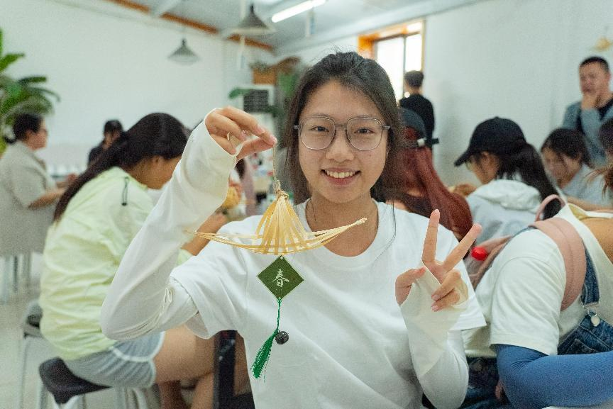 竹馨庄园位于劳四村内,占地400亩,是一座集生态农业、非遗体验、休闲文旅于一体的综合性实践基地。在这里,营员们在指导老师的带领下,体验了非遗传承技艺——竹编制作:用“十字交叉法”,将十二根竹篾编成小船。