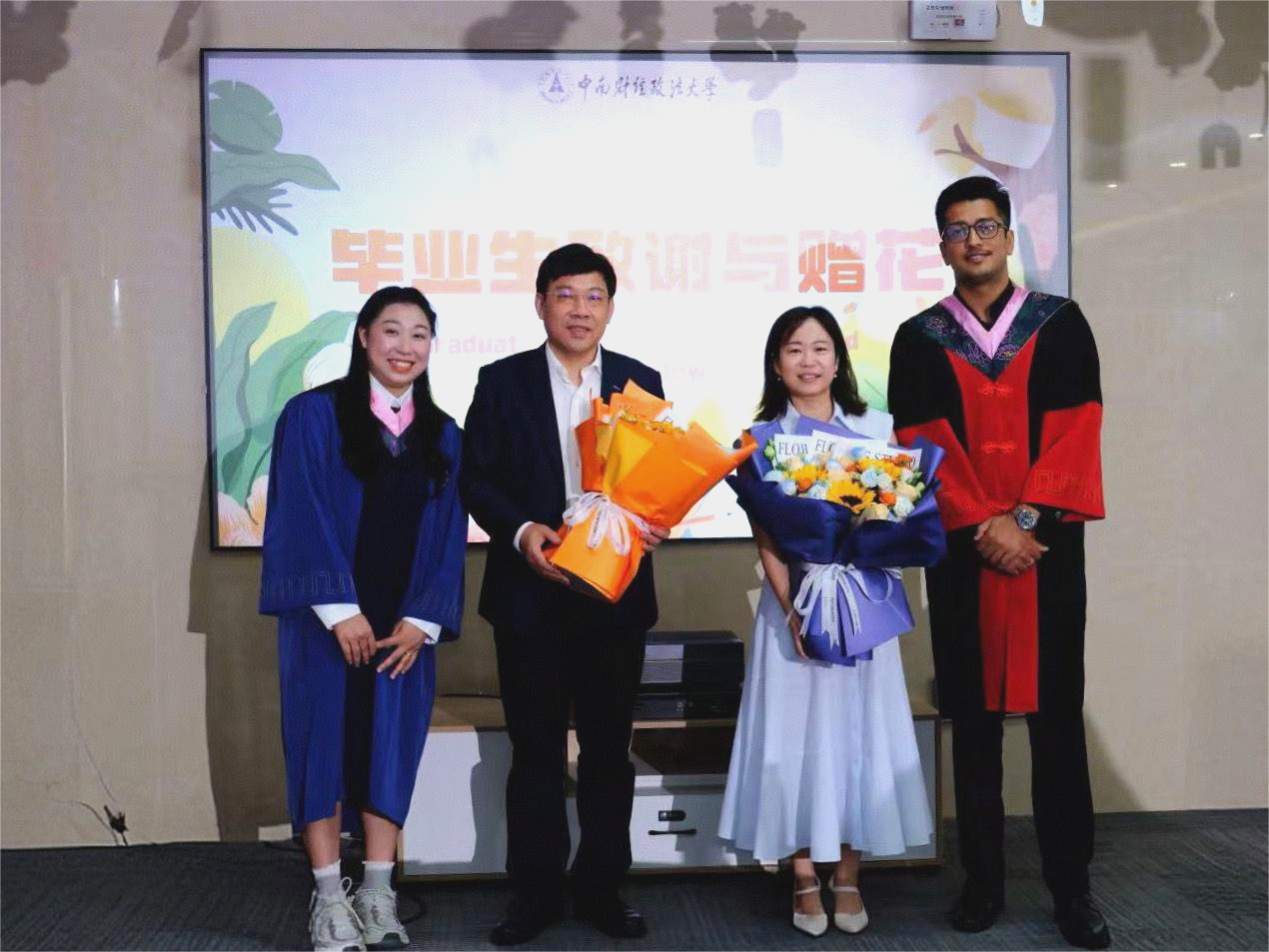活动现场,刘仁山副校长为优秀国际毕业生代表颁发校友联络员聘书,他们将搭建母校与海外校友沟通桥梁。随后,国际学生毕业生代表向刘仁山副校长和郑影院长敬献鲜花,表达对师长的感恩。