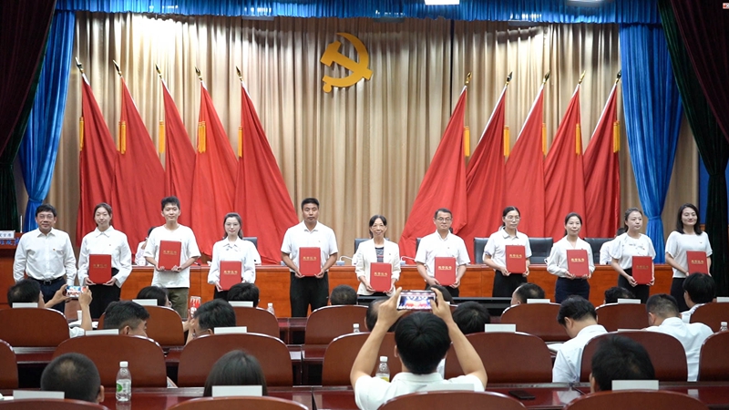 “我志愿加入中国共产党……”新发展党员代表、毕业生党员代表面向鲜艳的党旗庄严宣誓,与会全体党员一同重温入党誓词。