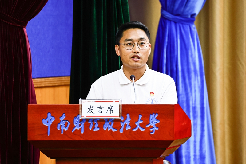学生获奖代表、法学院2023级研究生苏正民在发言中从历史跨越、时代跨越、个人跨越三个维度分享了关于“跨越”的故事,以表达对党和国家的感恩与热爱以及对中南大的真情与感谢。