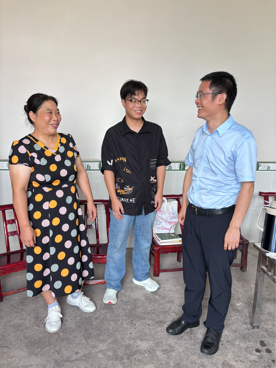 新闻网讯(通讯员 徐金花)8月6日上午,校党委常委、副校长陈柏峰率外国语学院党委书记陈亚奇、副书记秦小莉、纪检监察学院副院长刘杨及法学院辅导员徐金花,赴竹山县宝丰镇家访法学院2025级新生石京浩、外国语学院新生张奕铭,将育人环节前置,精准赋能学生成长。