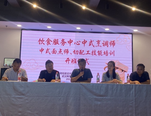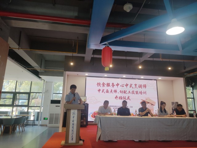 后勤保障部副部长阙胜齐、校工会办公室主任付瑜、饮食服务中心主任、副主任、全体中式烹调师、中式面点师和切配工参加开班仪式。