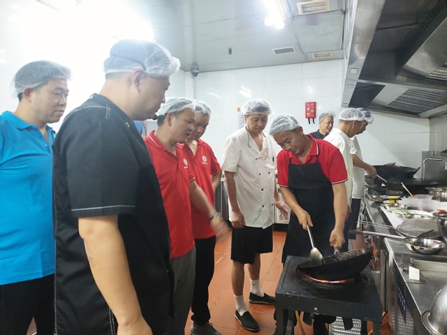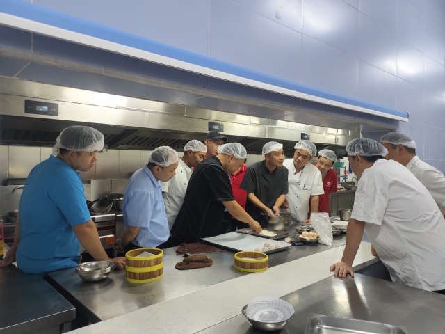 培训依托食堂实操现场,配备专业厨具与新鲜食材进行实地培训。培训大师现场演示关键步骤,学员们分组实操,大师逐一点评指导,互动气氛热烈。