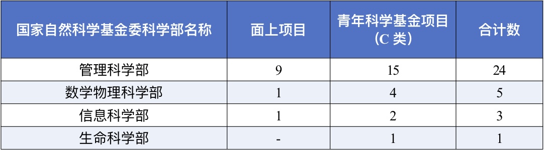 获批项目共涉及4个科学部,分布情况如下: