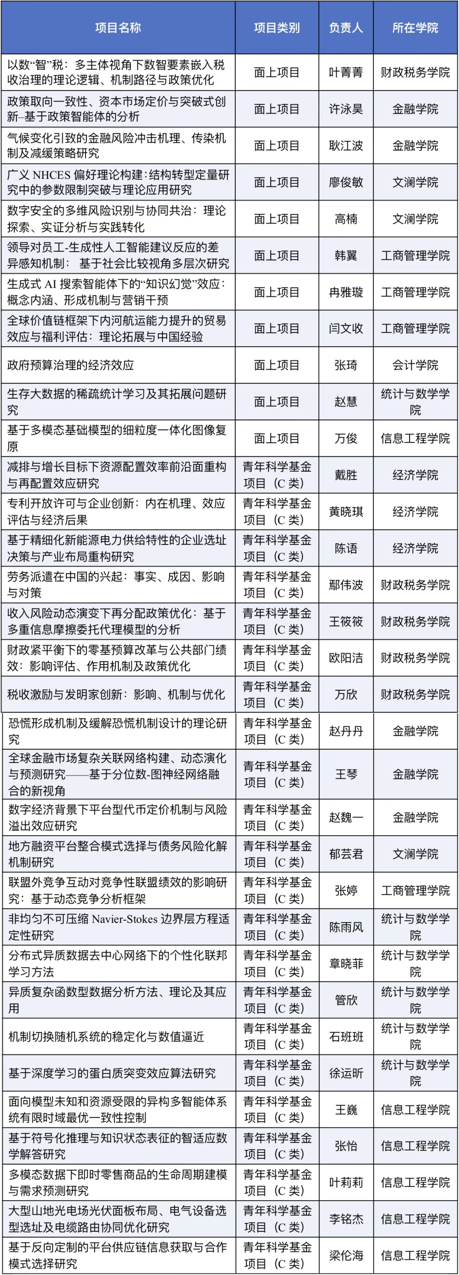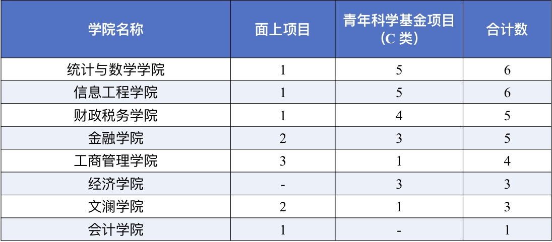 各学院项目立项情况如下: