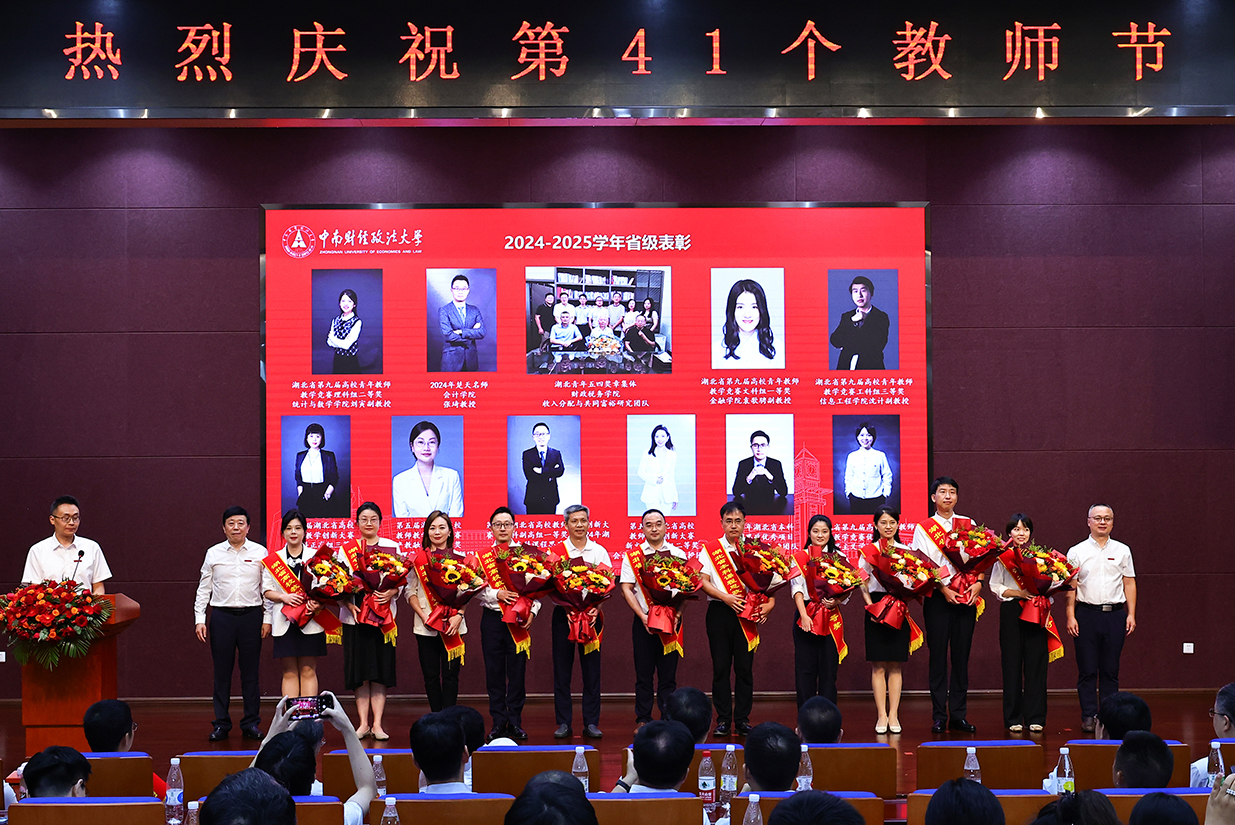 教师代表财政税务学院鲁元平教授发言,围绕“坚持与行动”同教师们分享教学科研及育人心得。学生代表工商管理学院周文倩同学发言,感念师恩并为教师们送上节日的祝福。