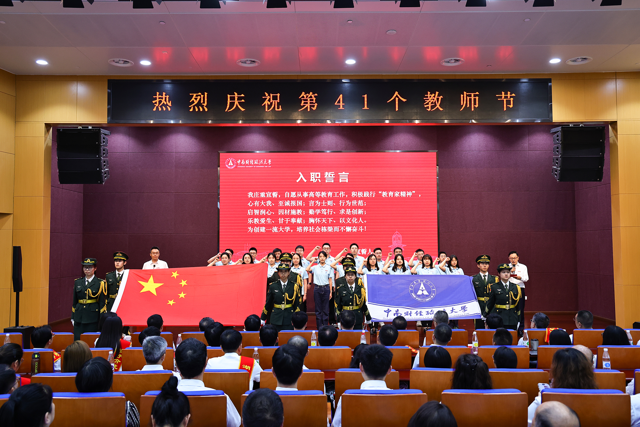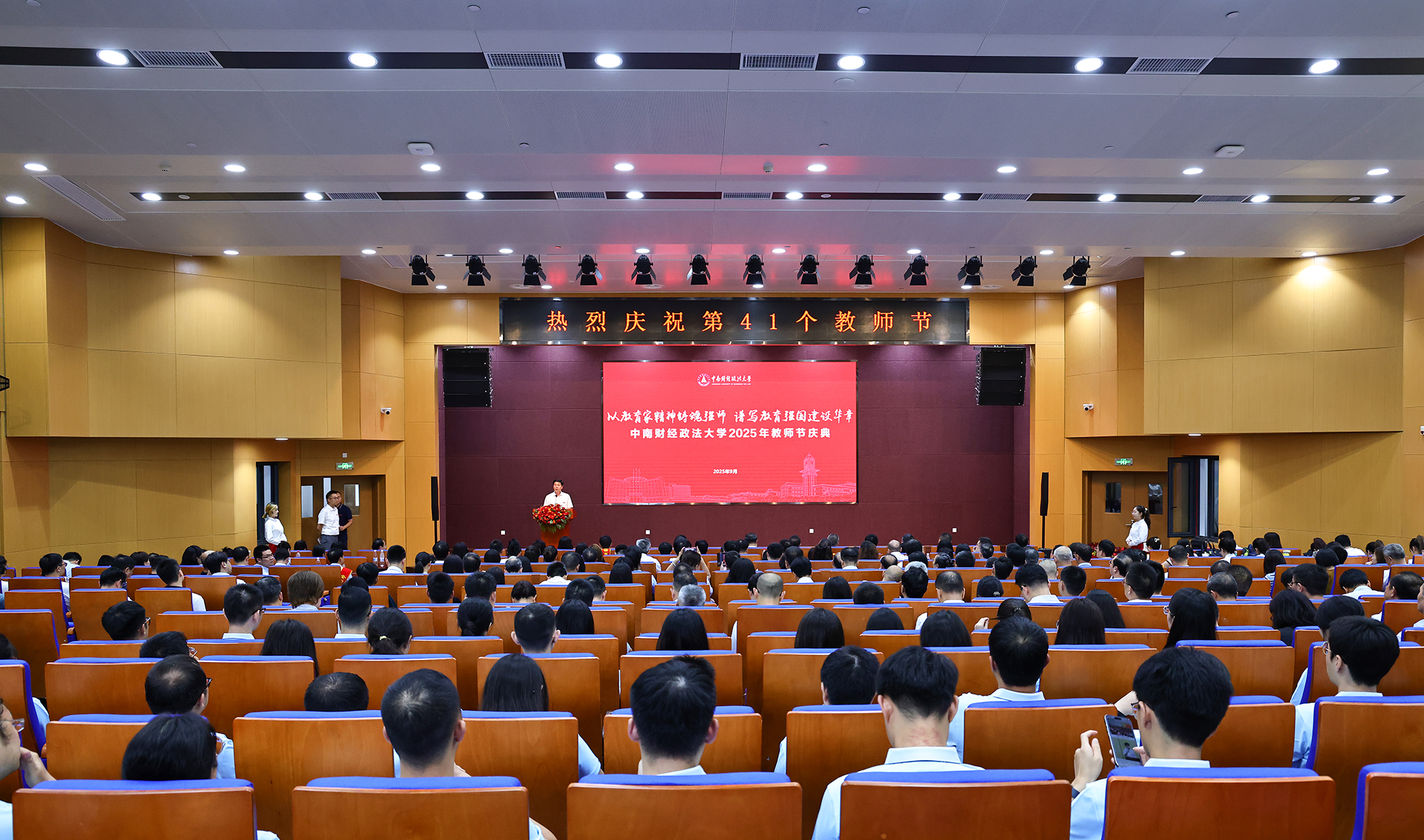 新闻网讯(通讯员 张立 李必成)9月8日下午,学校在文瀚楼南报告厅举行2025年教师节庆典,热烈庆祝第41个教师节。全体校领导班子成员,校党委常委、校长助理,各二级单位正、副职党政负责人,各教学单位系主任、教师党支部书记,高层次人才代表,获奖教师代表,光荣从教40年教师,荣休教师代表,新入职教职工和学生代表参加庆典。活动由校党委常委、副校长张琦主持。