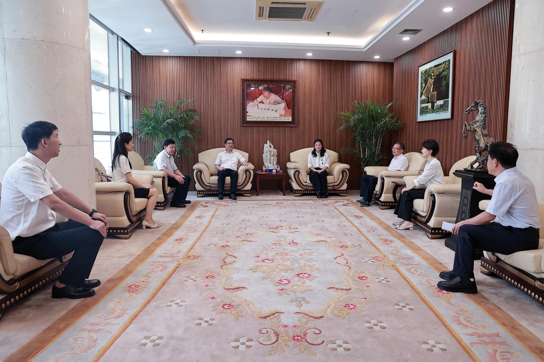 新闻网讯(通讯员 肖力玮 摄影 崔桢桢)9月8日,校党委书记侯振发、党委常委、副校长、校工会主席覃红、党委常委、副校长刘仁山,在中原楼五楼接待室与我校湖北省第九届高校教师青教赛获奖选手座谈。校办主任刘建明、工会常务副主席余启军、副主席吴艳、付绍山一同参加座谈。