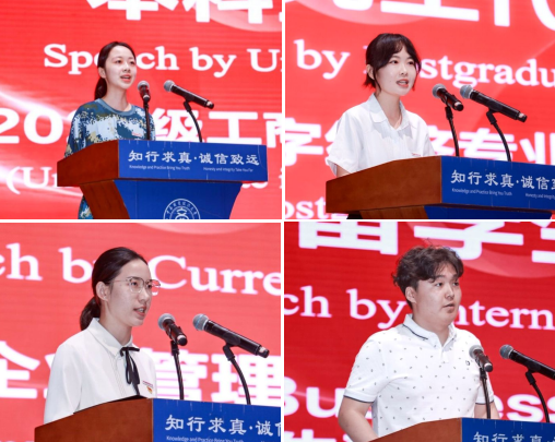 本科生新生代表蔡思羽、研究生新生代表张静萌、留学生代表Munkhbat Bilegmberel、在校生代表、2023级博士研究生黄千芷、教师代表邹碧攀教授依次发言,从未来规划、专业能力、家国情怀、强国建设、国际视野等方面肯定了学院发展及人才培养。