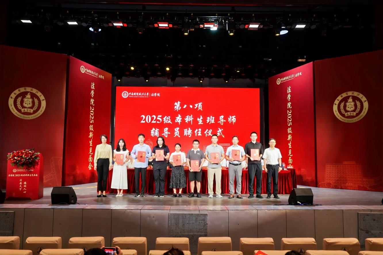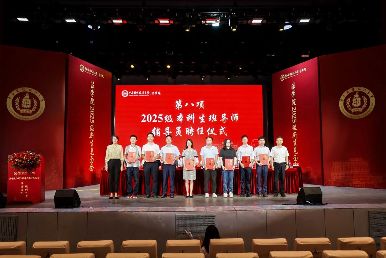 法学院副院长杨柳、党委副书记李司铎为2025级本科生18位班导师、3位辅导员老师颁发聘书。