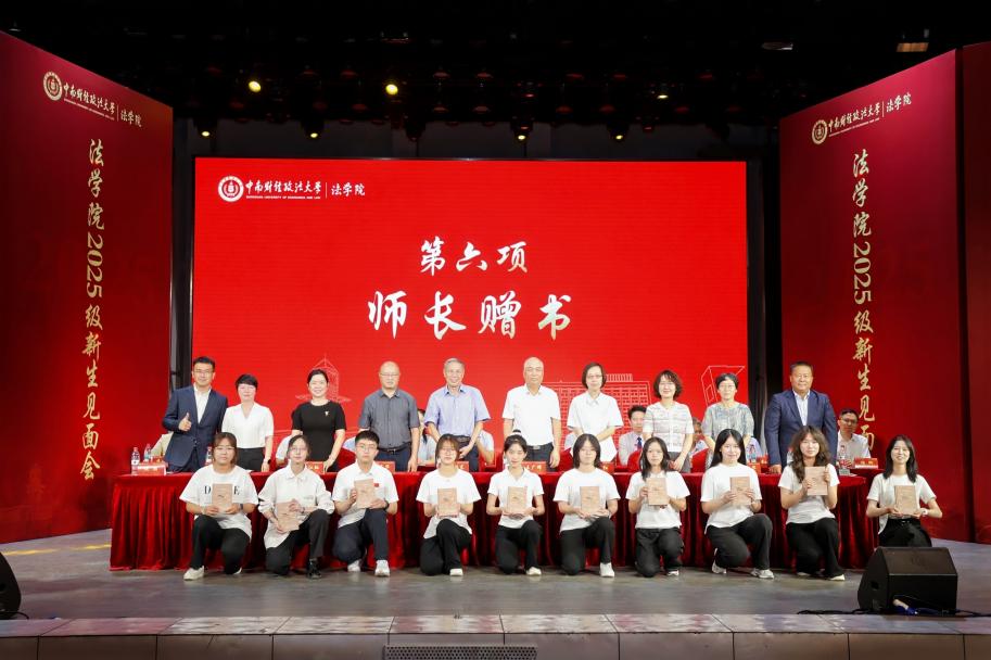 墨卷传薪,书香育人。领导老师向新生代表赠送《法学的11种可能》一书,激励新生系统构建法学学习的基本框架。