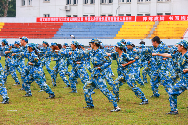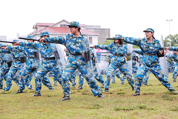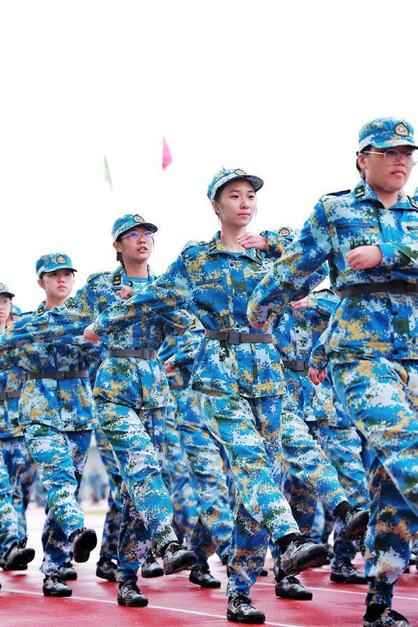 军训会操环节,形式多元,异彩纷呈。匕首操方队果敢干练,精准利落,以昂扬姿态书写青春豪迈;战术及战伤救护方队,反应迅速,技能娴熟,每一个动作都是速度与力量的双重考验;军棍盾牌术方队盾列如山,棍出如龙,以挺拔身影呈现攻防之势;军体拳方队迷彩加身,气宇轩昂,用青年力量诠释热血担当;分列式连队动作整齐,口号响亮,彰显了同学们的凝聚力与精神气。