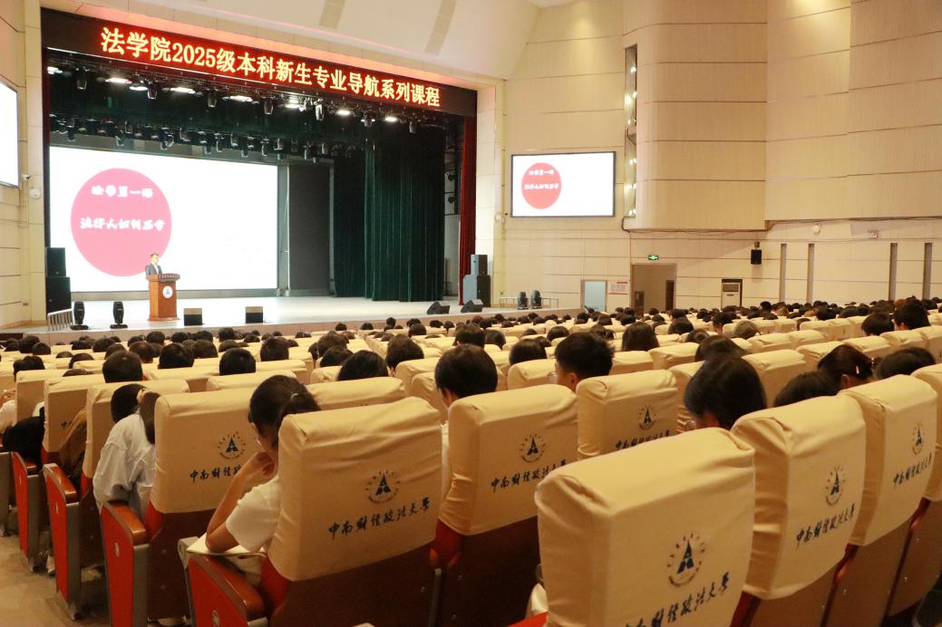 新闻网讯 10月12日,法学院2025级本科新生“明法启航”专业导航课程于南湖会堂正式启幕,全体本科新生齐聚一堂,共赴这场法学启蒙之约。