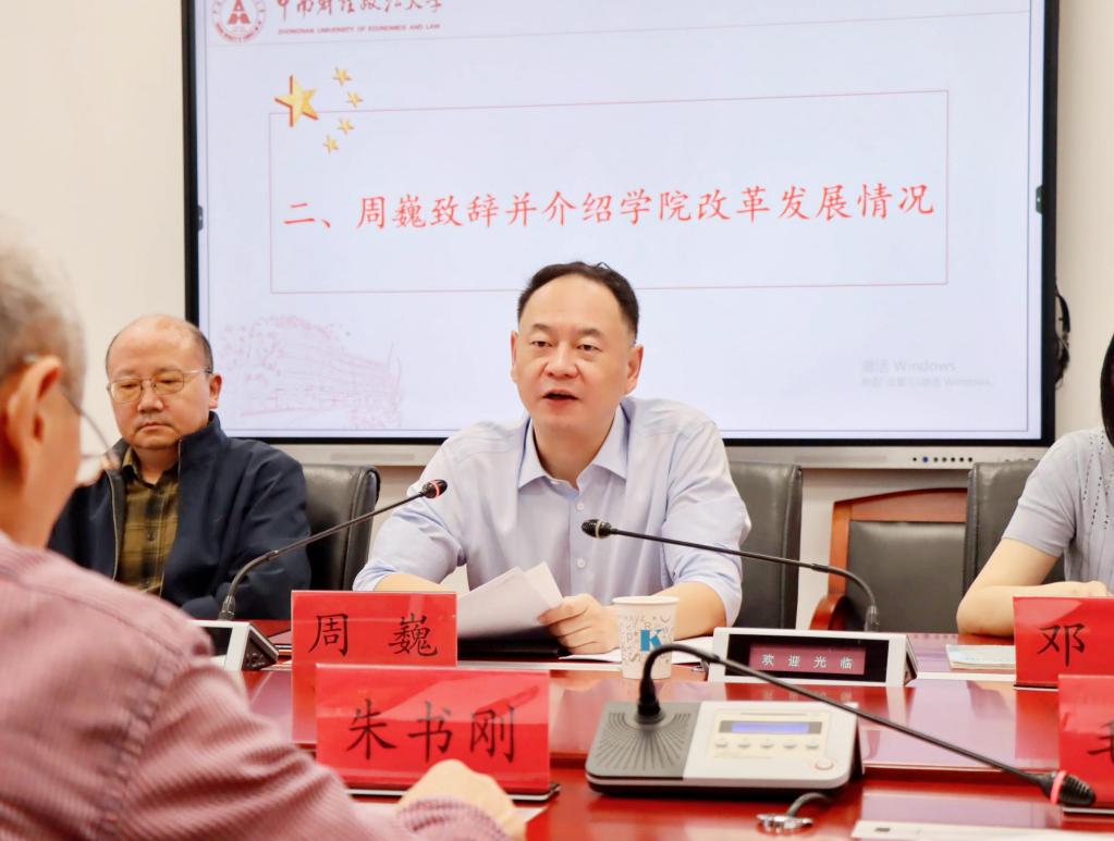校党委常委、宣传部部长兼马克思主义学院院长周巍致辞,他以“拜院友为师”“以院友为荣”“乘院友之力”三句话阐述了本次会议汇聚智慧、共谋发展的初衷。他详细介绍了学院近年来改革发展情况以及目前所面临的挑战,并恳请各位校友为学院高质量发展把脉问诊、建言献策。
