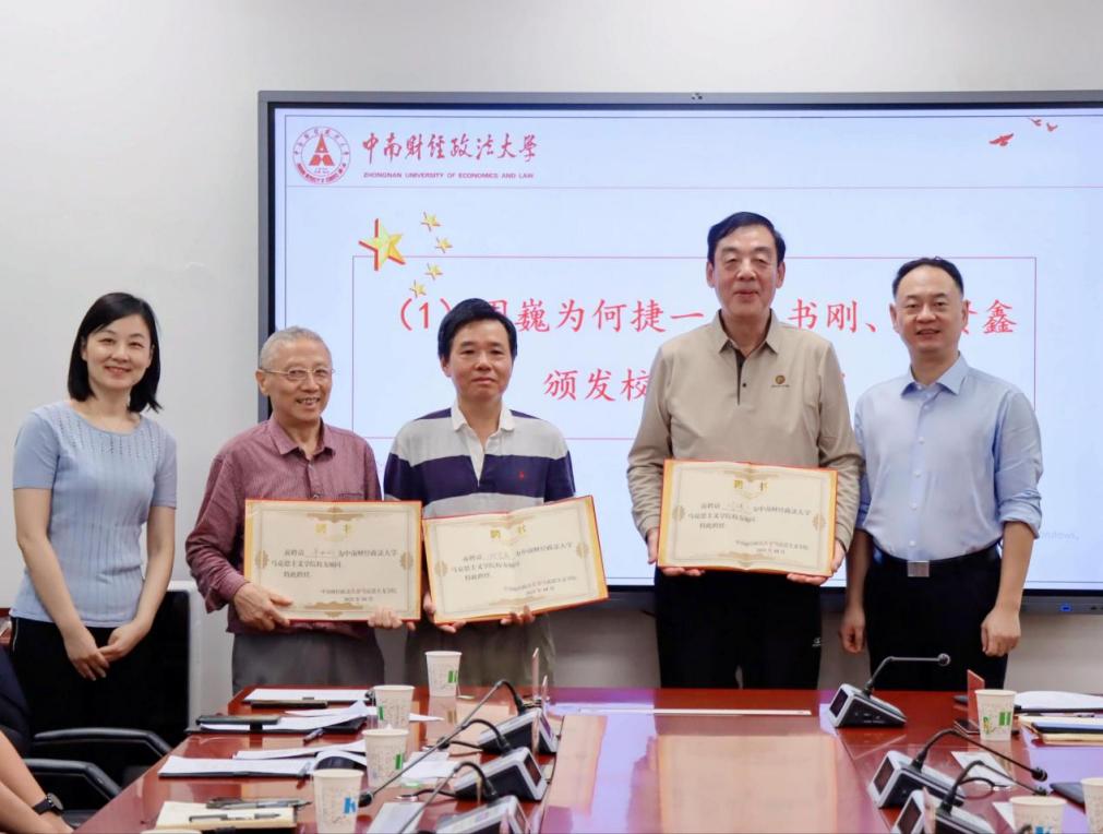 周巍院长为何捷一、朱书刚、胡贤鑫三位老领导、老教授颁发了校友顾问聘书