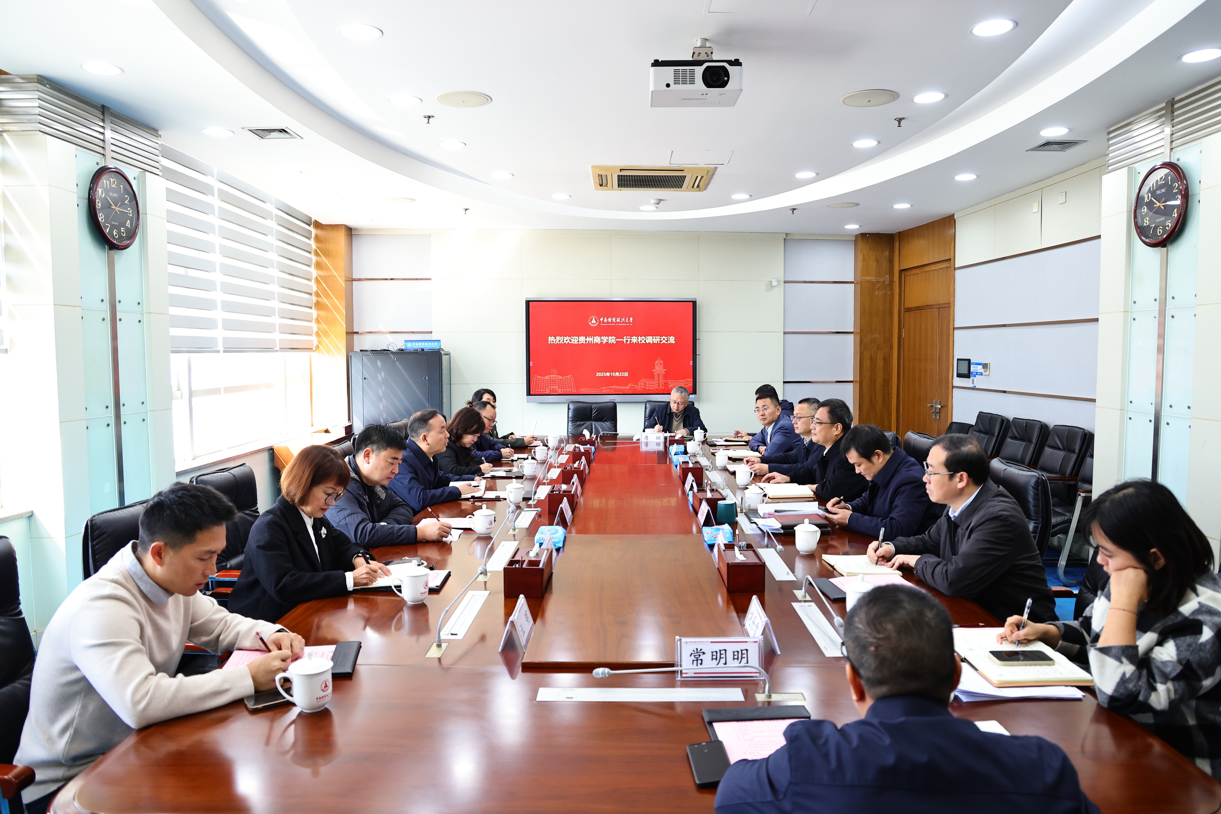 贵州商学院党办、院办、科研处、工商管理学院和我校党办校办、发展规划与学科建设办公室、科学研究部、校友工作与社会合作部、工商管理学院、知识产权学院(知识产权研究中心)、《米兰电竞·(中国区)学报》编辑部等部门负责人参加座谈会。