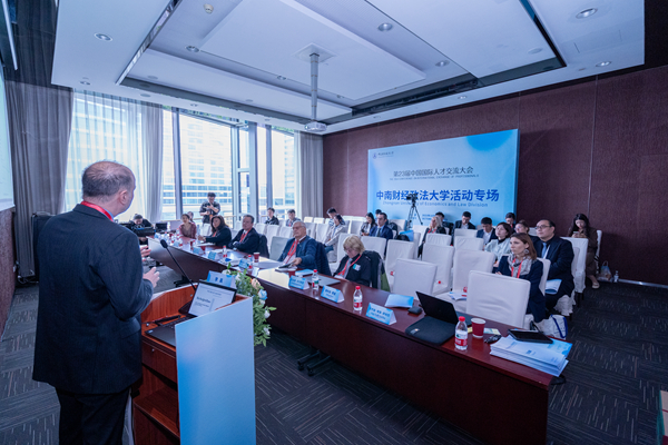 新闻网讯(记者 卓张鹏 通讯员 杨曼)近日,由人力资源和社会保障部(国家外国专家局)和上海市人民政府联合主办的第23届中国国际人才交流大会在沪举行。受主办方委托,我校承办中南大专场系列活动。校党委常委、副校长刘仁山出席活动。国际交流部、经济学院、法学院、工商管理学院、国际法学院、外国语学院等单位及我校邀请的40余位外国专家参加活动。