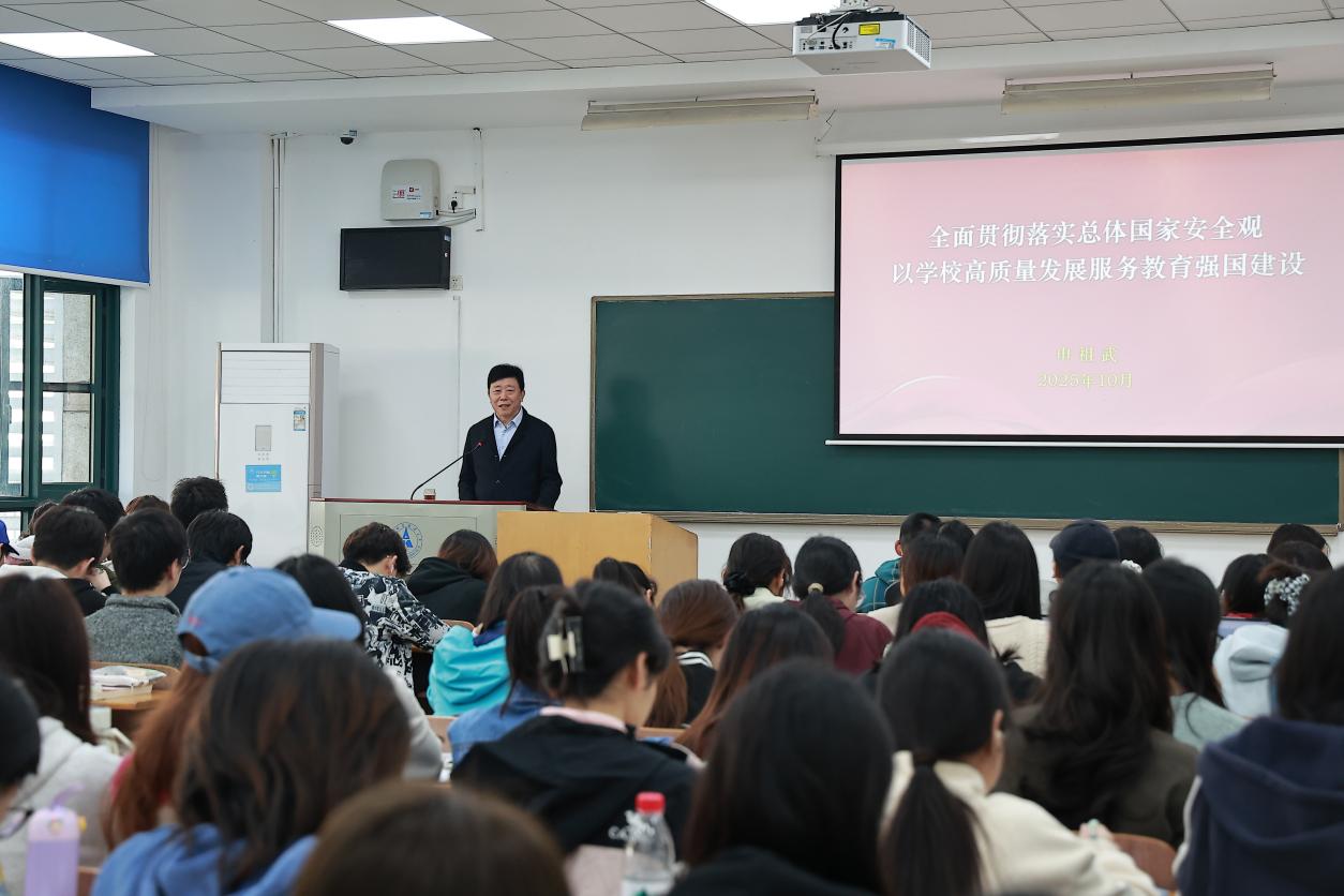 “维护国家安全,高校何为、青年何为?”申祖武号召师生主动担当,将安全理念融入学习、工作与生活,增强风险防范能力,积极参与平安校园建设,以高水平安全保障学校高质量发展,为教育强国建设贡献智慧与力量。