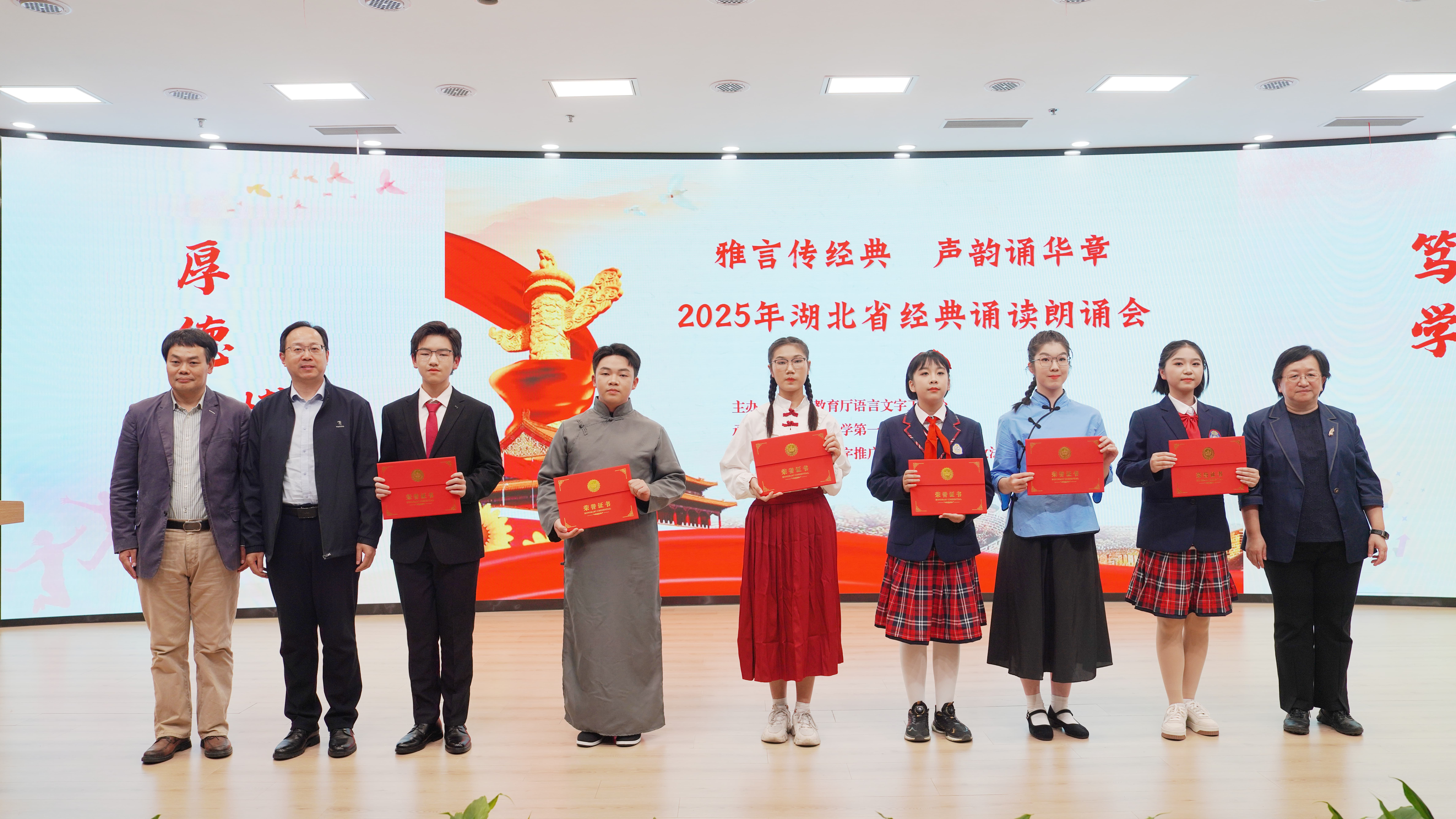 朗诵展示环节,来自华中师大一附中的学子以标准的普通话和饱满的情感深情演绎了多部经典作品,用声音勾勒出经典诗文的意境,生动传递出其中的文化底蕴与精神力量。