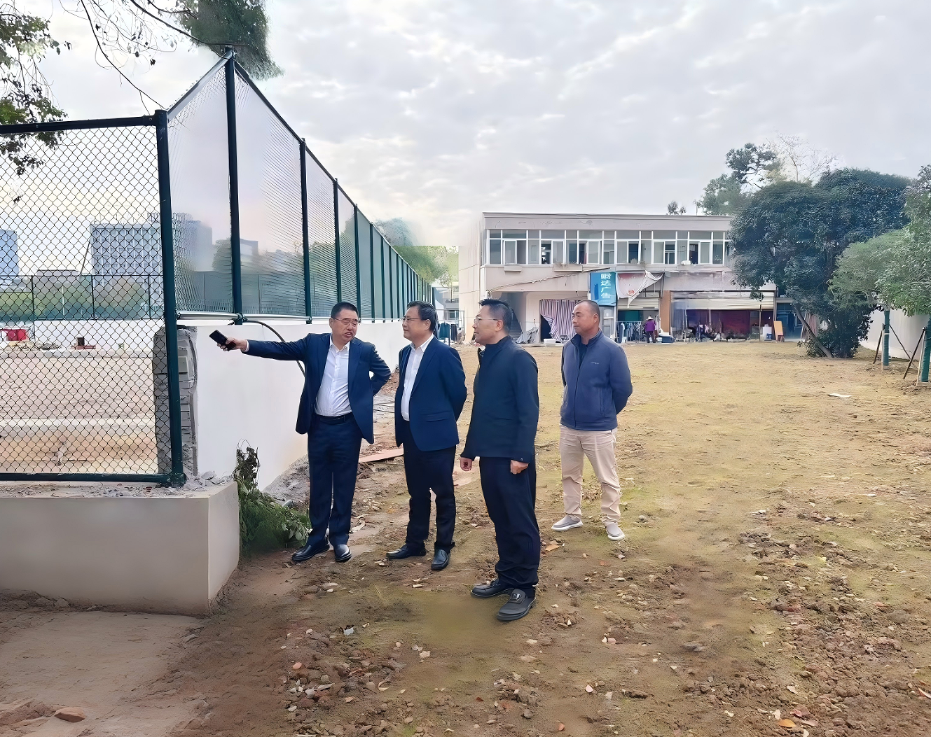侯振发一行先后走访查看了室外运动场地升级改造项目、文澜楼维修工程项目以及“一站式”学生社区(南湖校区)改造项目等项目工地。每到一处,侯振发都主动走上前去,与一线工人和管理人员亲切交流,详细了解相关情况,并代表学校向他们的辛勤劳动表示慰问和感谢。