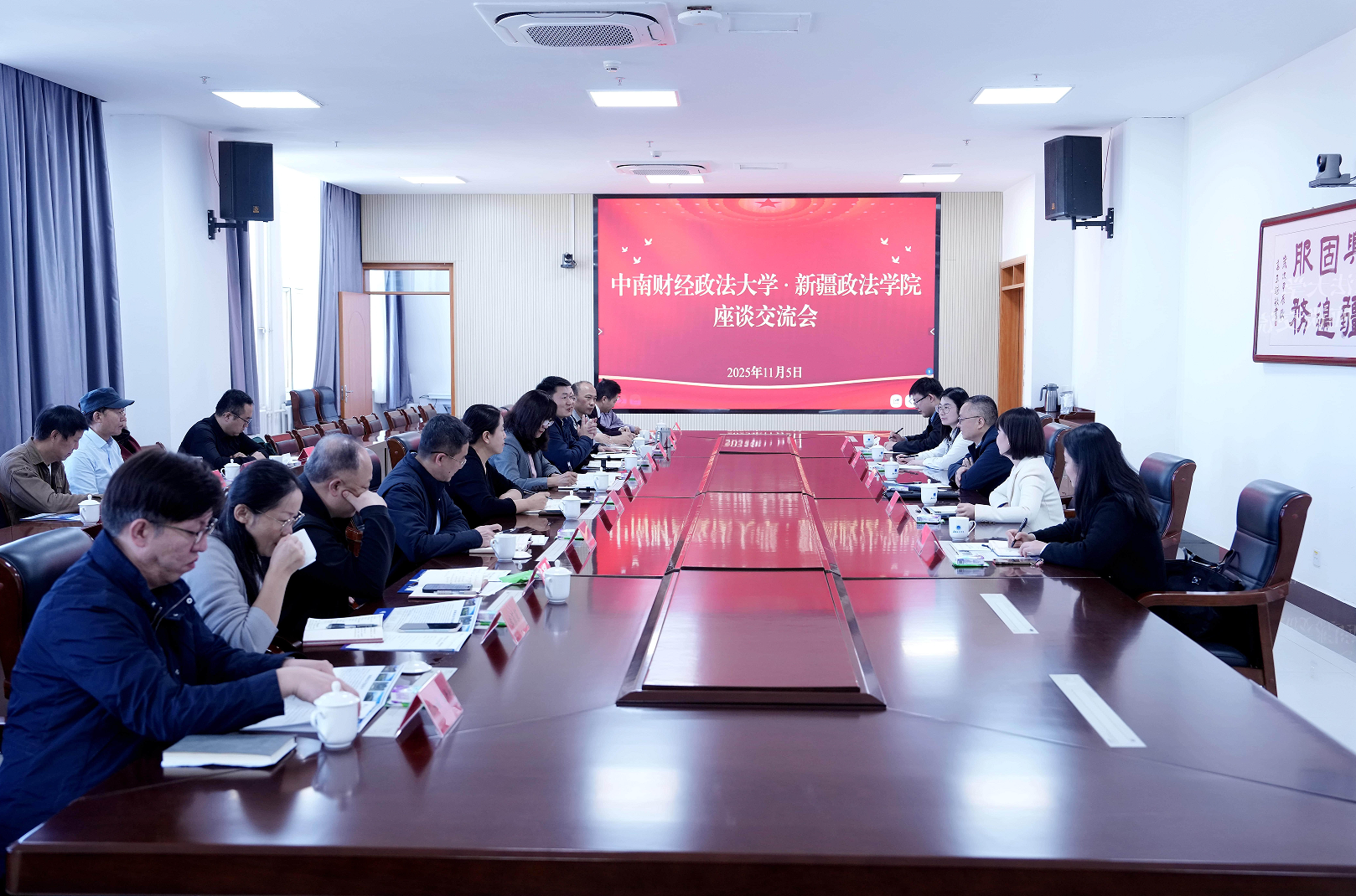 11月5日上午,新疆政法学院党委书记陈旭东,党委常委、副校长祁欢提前会见我校陈狮一行并开展亲切交流。随后召开座谈会,祁欢组织相关部门负责人参会,她介绍了新疆政法学院的基本情况、办学特色及发展需求,对我校长期以来的支持表示感谢,高度评价我校援疆干部人才和银龄教师的贡献。陈狮代表学校介绍调研来意,强调对口支援是重要政治任务,回顾了2022年以来两校在师资、学科、科研等领域的合作成果。双方围绕进一步深化对口支援工作展开深入交流,明确后续在学生工作、人才培养等方面的合作方向,推动两校合作常态化机制化。