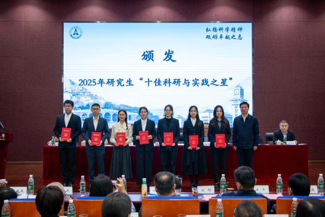 朱方伟校长为2025年研究生“十佳科研与实践之星”获奖者代表颁奖