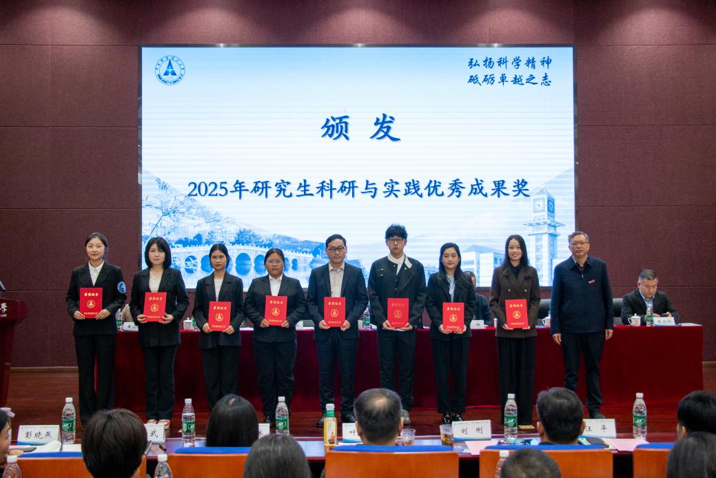 校领导为荣获2025年度研究生科研与实践先进个人研究生学子及优秀成果奖获奖代表颁奖。