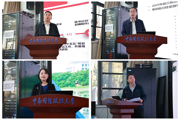 会上,发展规划与学科建设办公室负责人汇报了学校“十五五”规划编制推进情况,人事部、高层次人才工作办公室负责人汇报了学校教师引进和人才引育情况,党委学生工作部、后勤保障部负责人汇报了首义校区学生回迁南湖校区的工作方案和保障方案,财务部相关同志汇报了零基预算改革相关情况。法学院负责人、工商管理学院负责人分别围绕学院“十五五”发展规划、学科建设、人才引进等内容作了交流发言。与会人员围绕会议主题进行研讨交流。