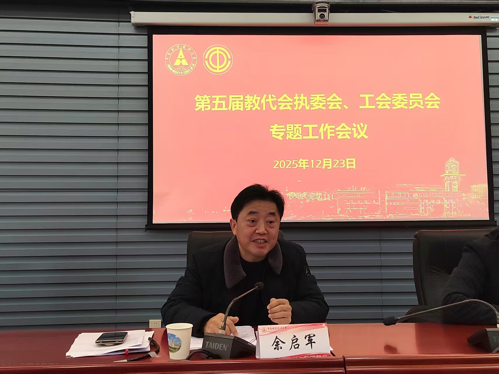 覃红副校长深情回顾了第五届两委委员的履职历程,充分肯定了大家在先进模范选树、劳动技能竞赛和工会理论研究等方面取得的优异成绩。他表示,过去五年,学校工会荣获多项国家级、省级荣誉,这些成绩离不开每一位两委委员的辛勤付出与共同努力。换届工作即将开展,希望两委委员及各分工会主席以高度的责任感和使命感履职担当,积极做好各基层分工会的换届动员与准备工作,进一步团结带领全体教职工,共同为学校高质量发展贡献力量。