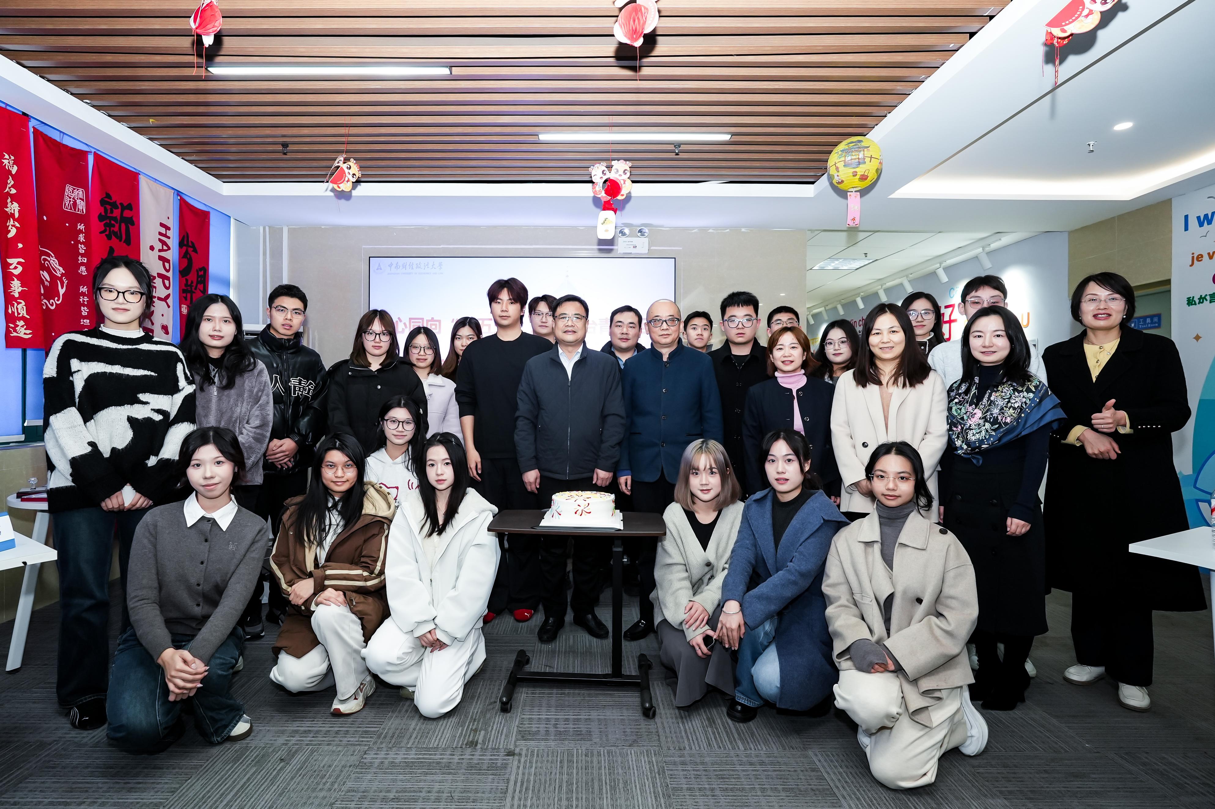 活动最后,侯振发、徐涤宇与港澳台学生代表共同印制活动纪念章,并一同切分寓意美好的新年蛋糕,祝愿同学们在新的一年与学校、国家发展同频共振,共创未来。
